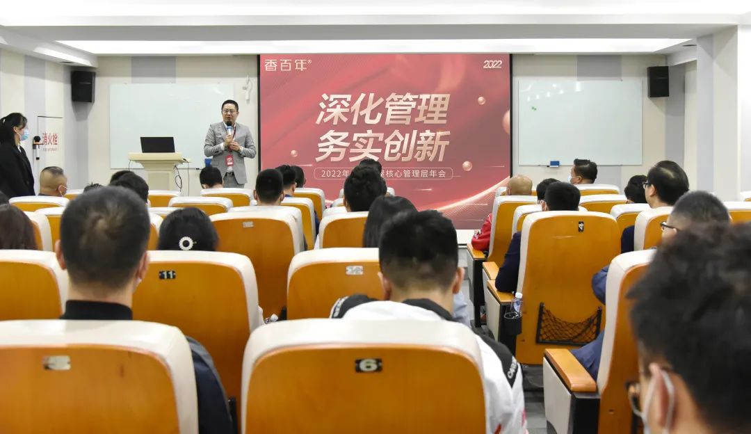 緊接著肖崇豪總經理對2021年度的工作做了總結,他對香百年當前市場現狀與前景有著獨特的見解,也向大家提出了衷心真誠的建議,慷慨激昂的致辭給大家增添了無窮的信心。